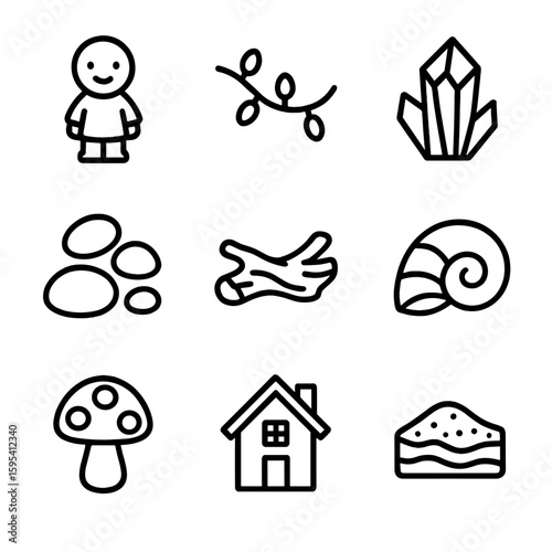 Miniature vector fairy driftwood mini figurine light icon shell decorative set terrarium
