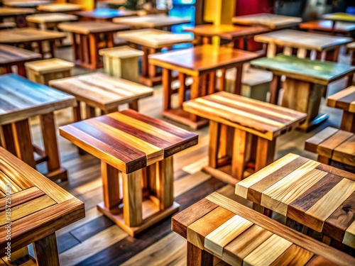 Miniature Wooden Tabletops: Rustic Charm & Craftsmanship in Tilt-Shift Photography