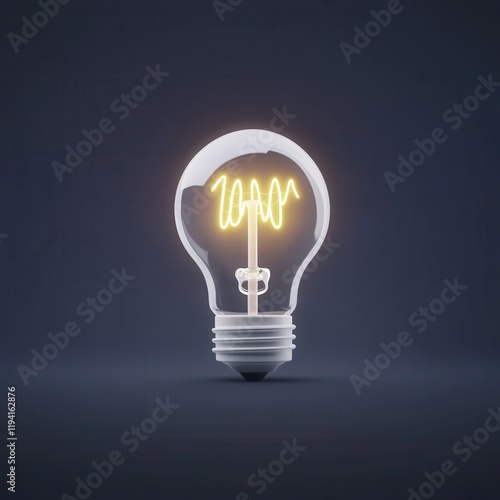 minimal 3d idea bulb light icon concept. Illuminated light bulb with wave design
