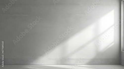 Minimal abstract light gray background for product presentation. Shadow and light from windows on plaster wall.