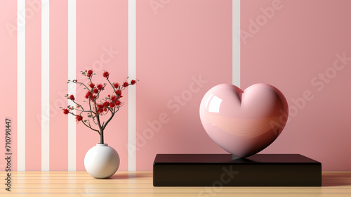 Minimal background, mock up with podium for product display,Abstract white geometry shape minimalist Valentine's day pink background,