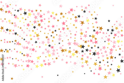 Minimal black pink gold starburst scatter background. Little starburst spangles New Year decoration particles. Isolated star burst pattern. Sparkle confetti banner decor.