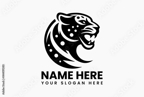 Minimal cougar or leopard head vector logo design, stylized wild cat symbol isolated on white background for modern branding and stock illustration