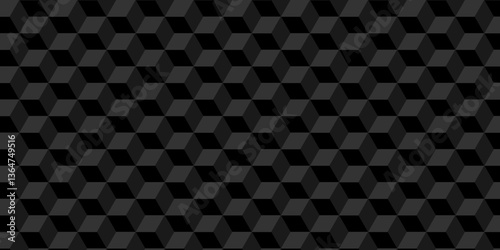 Minimal cubes geometric tile and mosaic wall grid retro digital hexagon technology wallpaper background. black block cube structure backdrop square triangle texture vintage design.