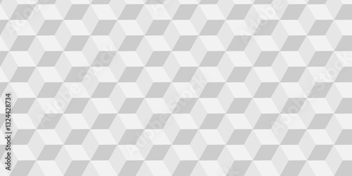 Minimal cubes geometric tile and mosaic wall grid retro digital hexagon technology wallpaper background. white and gray block cube structure backdrop square triangle texture vintage design.