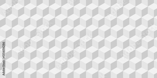 Minimal cubes geometric tile and mosaic wall grid retro digital hexagon technology wallpaper background. white and gray block cube structure backdrop square triangle texture vintage design.