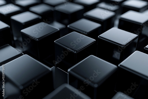 Minimal dark black cube background with soft lighting and subtle reflections for futuristic design
