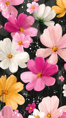 minimal floral line art background in pop art twist using bold outlines and high contrast floral accents