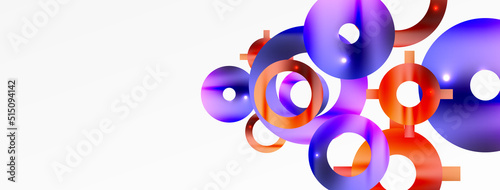 Minimal geometric abstract background. Shiny and glossy circle, line and round shapes design. Trendy techno business template for wallpaper, banner, background or landing
