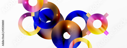 Minimal geometric abstract background. Shiny and glossy circle, line and round shapes design. Trendy techno business template for wallpaper, banner, background or landing