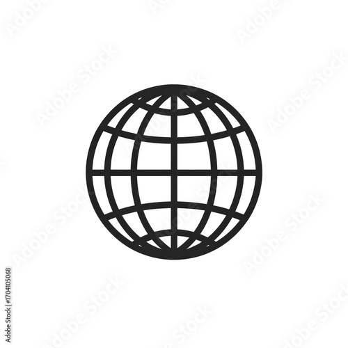 Minimal Globe in Thin Line Art Style on Transparent Background