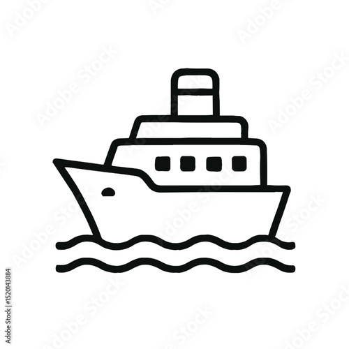 Minimal line art icon of cruise ship sailing on waves symbolizing sea travel, tourism, and marine transportation