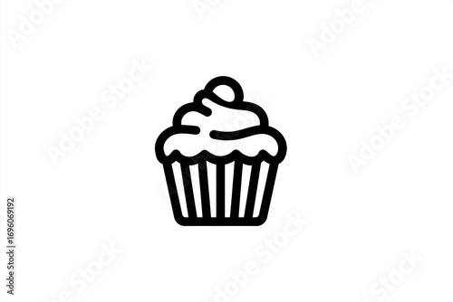 Minimal Line Icon of Cupcake – Bold Outline Vector on White Background