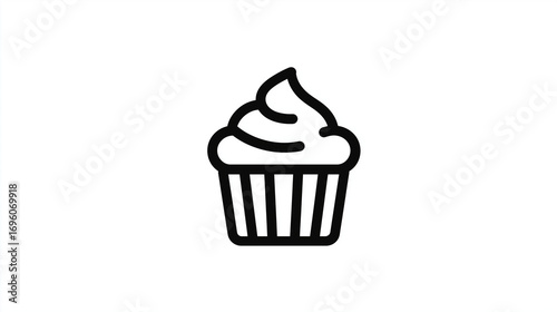 Minimal Line Icon of Cupcake – Bold Outline Vector on White Background