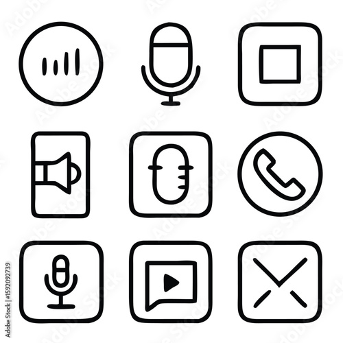 Minimal line icons for UI/UX mobile app – Call, Voice, Voicemail, Contact, Dial, Speaker, Headphone, Mic, Chat, Support