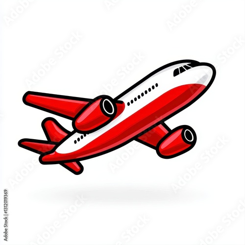 Minimal outline icon of an airplane in red color isolated on a white background featuring simple design elements