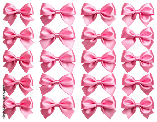 Minimal Pink Gift Bows with Subtle Satin Texture in Grid Pattern – Transparent PNG.