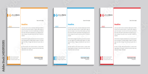 minimal simple corporate modern letterhead design template set of three with various colors. creative abstract letterhead design bundle for your business.