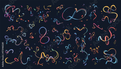 Minimal squiggle vector set, abstract flowing line shapes, colorful ribbon doodles, modern isolated elements for pattern design. Ai Generate