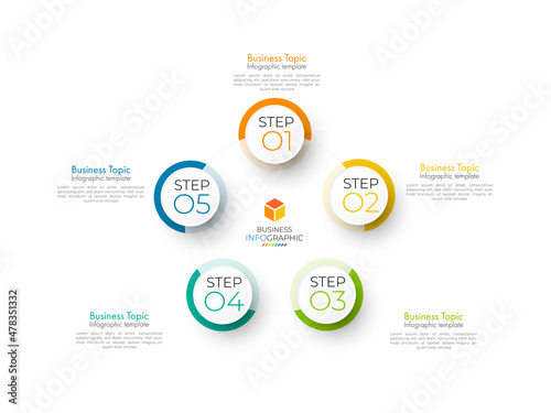 Minimal step infographics design vector and icons can be used for workflow layout, diagram, annual report. Vector infographics timeline design template with 5 options, parts, steps or processes.