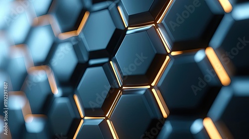 Minimal symmetry concept. Close-up of futuristic hexagonal pattern with glowing edges and sleek design.