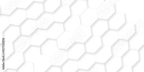 Minimal white hexagonal hexagon modern technology creative emboss light honeycomb polygonal web. abstract geometric science and mosaic tile with template texture background.