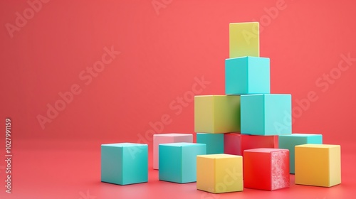 Minimalist 3D cubes Minimalist 3D cube designs in festive colors with a clear area for text, perfect for modern and sleek holiday greetings