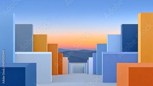 Minimalist Abstract Fantasy Landscape with Colorful Geometric Shapes