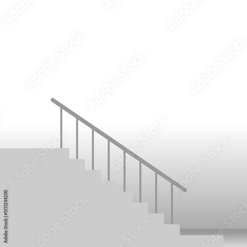 Minimalist abstract staircase design, featuring a series of floating steps forming a geometric zigzag pattern. The artwork has a monochrome color scheme with soft shadows