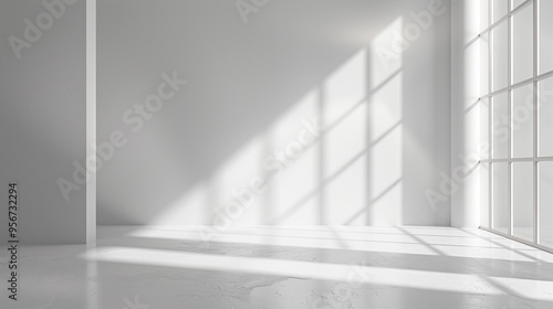 Minimalist Abstract White Background with Soft Shadows and Light Reflections, Ideal for Product Display or Advertising Backdrop in a Studio Setting