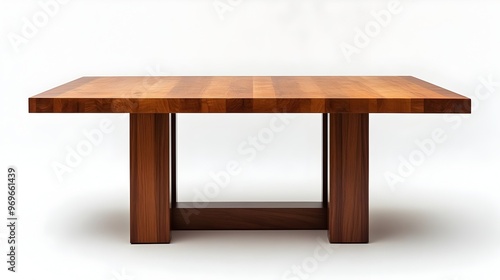 Minimalist and modern rectangular dining table with a clean wooden top isolated on a plain white background This simple and elegant furniture piece showcases a contemporary and functional design