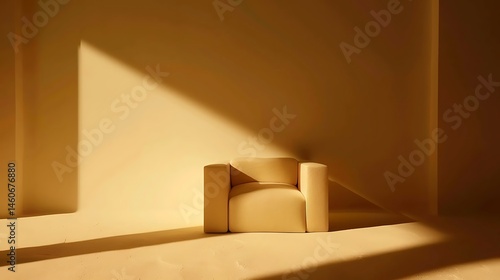 Minimalist Armchair in Warm Light Accented Room corner Setting