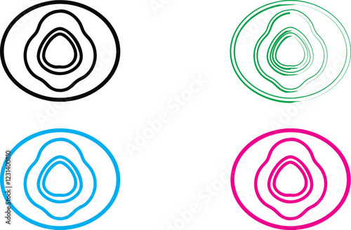 Minimalist avocado icons, colorful outlines, simple geometric shapes, flat design, clean lines, vibrant colors, monochrome illustrations, graphic design elements, vector art style, food symbols, moder