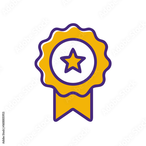 Minimalist Award Ribbon Icon – Flat Achievement and Quality Symbol in Yellow and Purple