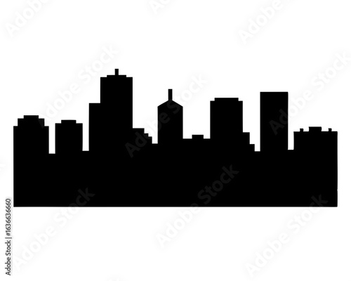 Minimalist Black and White City Skyline Silhouette Design with Multiple Buildings