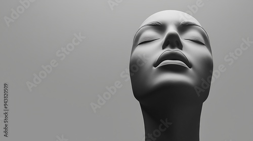 Minimalist black and white sculpture of a woman's face, capturing elegance and calm.