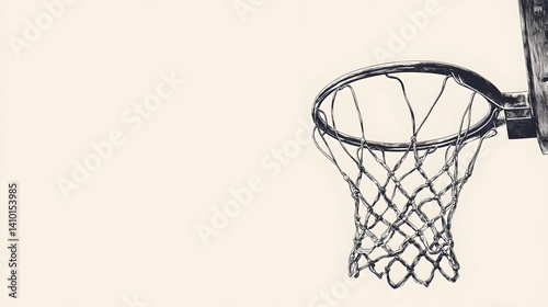 Minimalist Black and White Sketch of Basketball Swishing Through Net Hoop