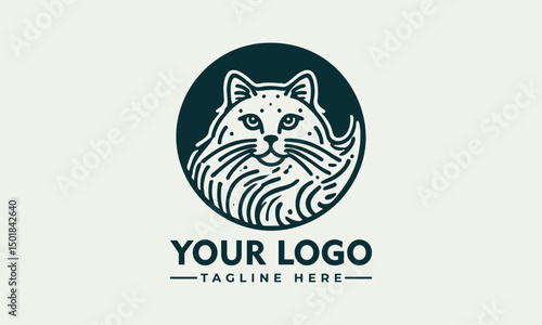 Minimalist black cat sitting in circular frame with elegant silhouette and clean lines. Animal concept