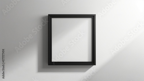 Minimalist Black Frame on White Wall: Simple and Elegant Empty Picture Frame Ready for Artwork or Photography Display in Modern Interior