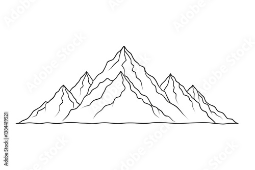 Minimalist black ink line-art of Mount Everest, elegant design on transparent background, PNG file, perfect for modern art, logos, and digital projects