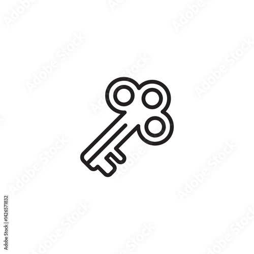 Minimalist black outline of an antique key with three circular bows, symbolizing access, mystery, or authority, set against a clean white background.