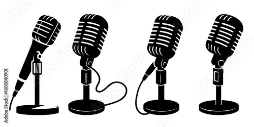 Minimalist black silhouette vector or illustration of a microphone for stage or podcast on white background