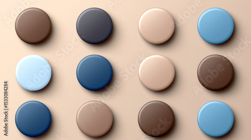 Minimalist blue and brown button designs with soft shadows, perfect for sleek apps and modern websites.