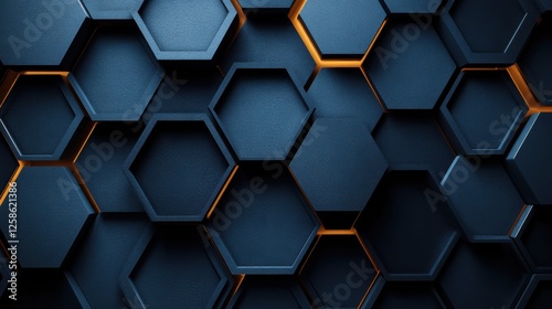 Minimalist Blue background with hexagons and lines for design. Banner template with white center text area. Ideal for modern designs.