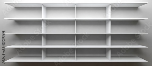 Minimalist bookshelf design featuring blank white shelves providing ample space for text or display items in a contemporary setting