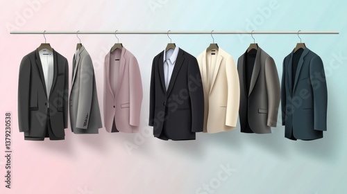 Minimalist business attire displayed elegantly against soft pastel backgrounds creating a fresh and modern style