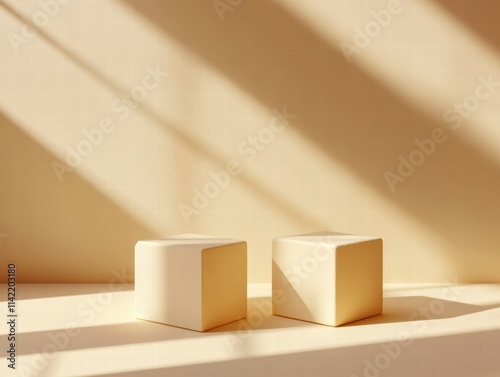 Minimalist Buttercream Yellow and White Block Design Studio Photography Bright Environment Top View Aesthetic Concept