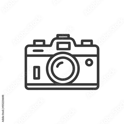 Minimalist Camera Icon: Clean Line Art Style on White Background