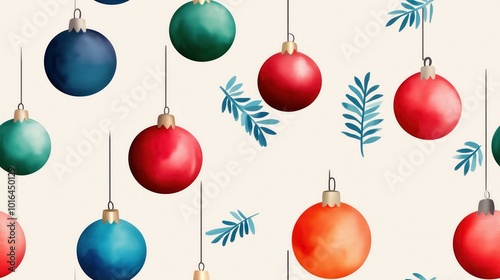 Minimalist Christmas ornament hanging on a neutral background with copy space Colorful red blue green and orange holiday baubles in a flat lay composition with a simple elegant and festive aesthetic