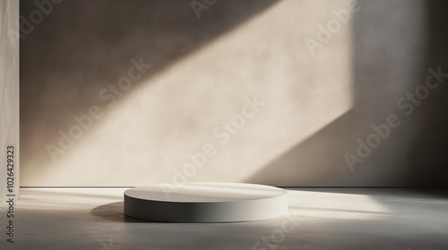 Minimalist circular podium in a softly lit room.